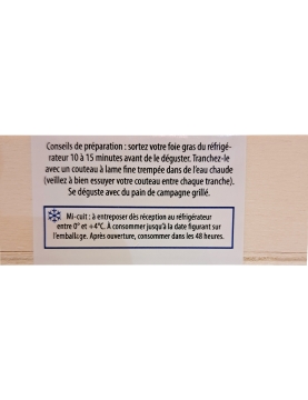 Sortez votre foie gras du réfrigérateur 10 à 15 minutes avant de le déguster. Otez l’opercule et dégagez votre foie gras en exerçant une légère pression sur l’emballage. Tranchez-le à l'aide d'un couteau à lame fine trempé dans de l'eau chaude (veillez à bien essuyer votre couteau entre chaque tranche) ou bien utilisez un tranchoir à foie gras. Accompagnez votre foie gras de pain de campagne ou de toasts.
