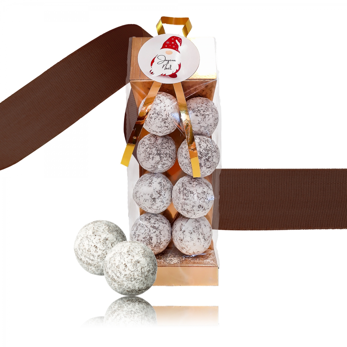 Les truffes au cognac "Le Caraque d'Or" sont confectionnées avec une ganache fine au chocolat et au cognac. Cette ganache offre une texture onctueuse et fondante, rehaussée d'une touche aromatique de cognac. Ces truffes se conservent entre 16 et 18°C et sont appréciées pour leur équilibre entre le chocolat et l'arôme subtil de l'alcool.