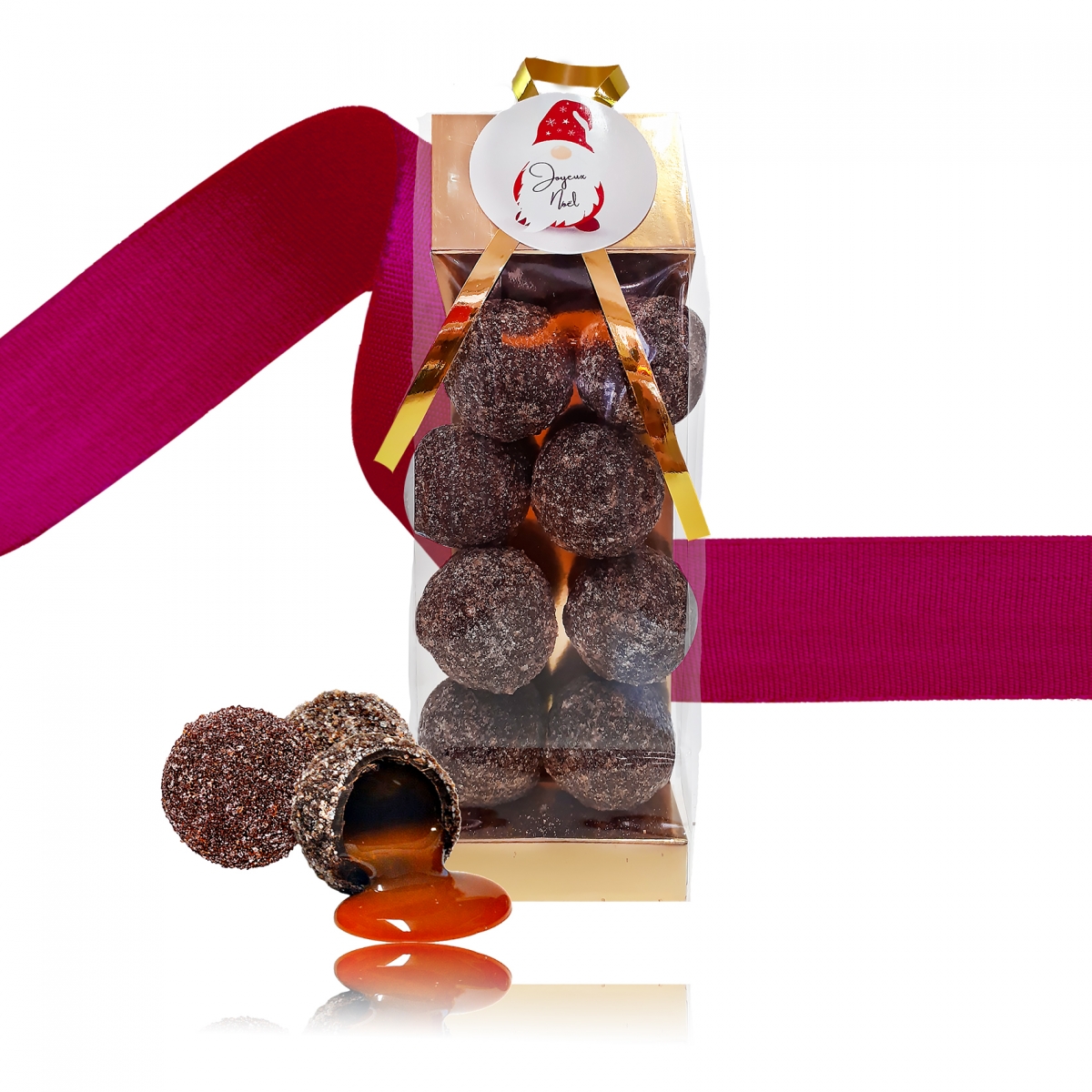 Les truffes au caramel et à la fleur de sel de Guérande sont confectionnées avec un caramel subtil, légèrement salé grâce à la fleur de sel de Guérande, enrobé dans une couverture de chocolat au lait à 40 %. Elles offrent une expérience gustative équilibrée entre la douceur du caramel et la pointe salée, rehaussée par la texture fondante du chocolat.