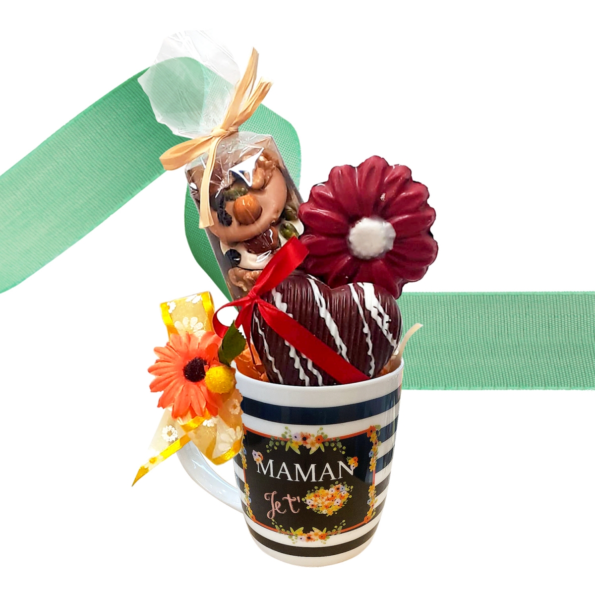 Présenté dans une jolie tasse décorée, ce coffret artisanal réunit des créations chocolatées raffinées, faites avec passion par Fruits Défendus :