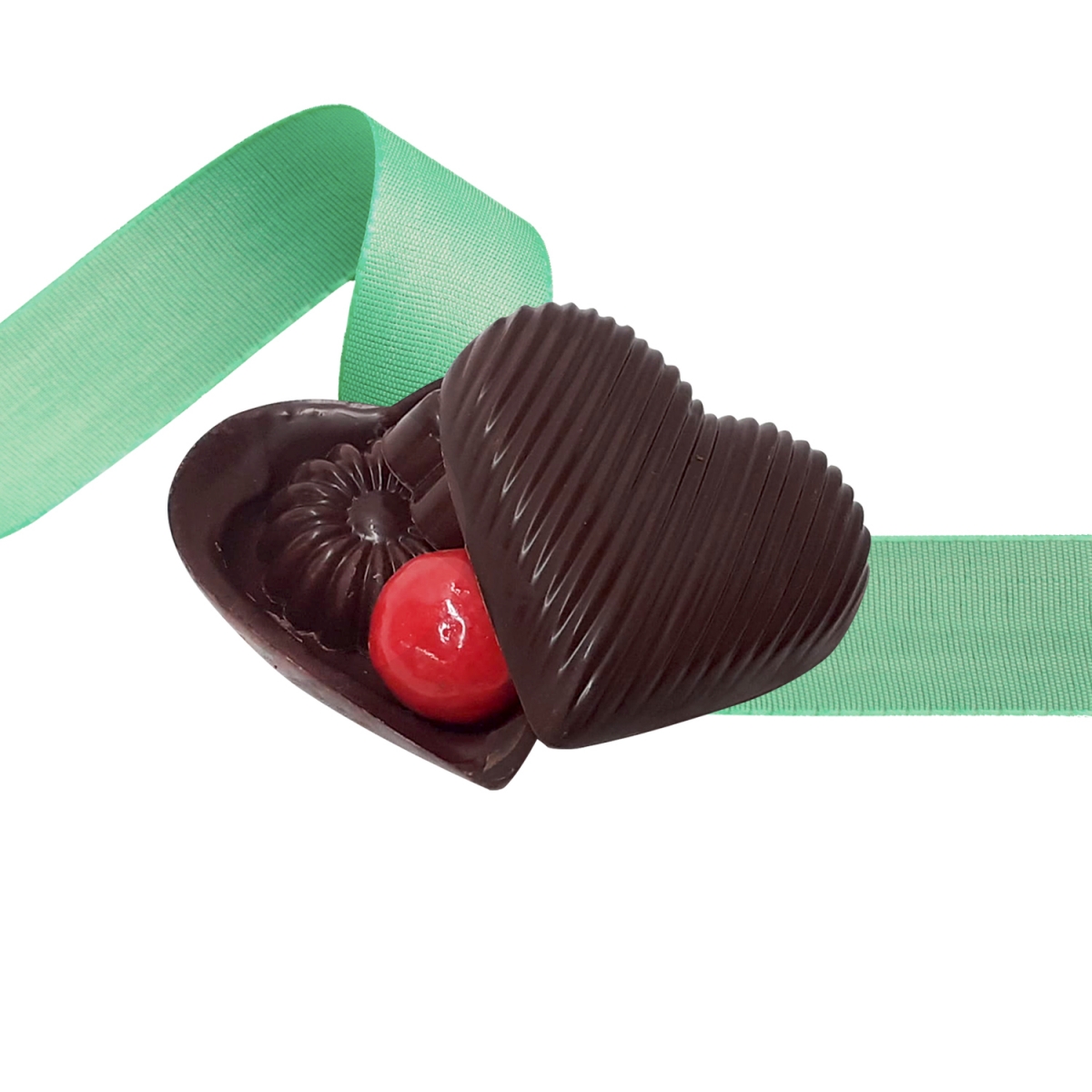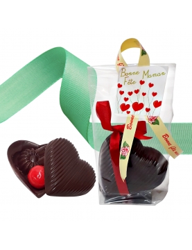 Un immense « je t’aime » dans un délicieux petit cœur bonbonnière en chocolat maison, (chocolat noir 66% ou chocolat au lait selon vos gouts).