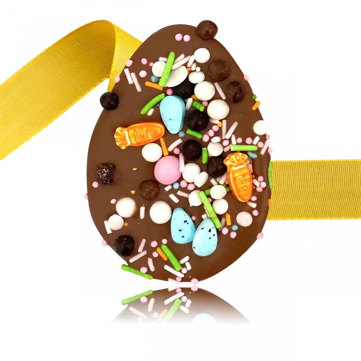 Cet œuf mendiant en chocolat au lait est recouvert d’un joyeux mélange de mini Smarties, sprinkles colorés et vermicelles pour un festival de saveurs et de croquant et véritable explosion de bonne humeur. Un délice à croquer sans attendre ! ![]()