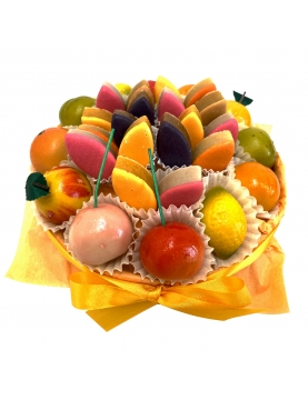 Découvrez nos délicieux ballotins de fruits confits, un festival de saveurs composé d'une riche sélection de délices maison. Imaginez des clémentines confites, des figues noires dodues et envoûtantes, des agrumes éclatants avec l'orange et le citron, de magnifiques poires confites, des tranches de melon aux teintes ensoleillées, et une touche exotique avec nos ananas confits... Chaque bouchée...