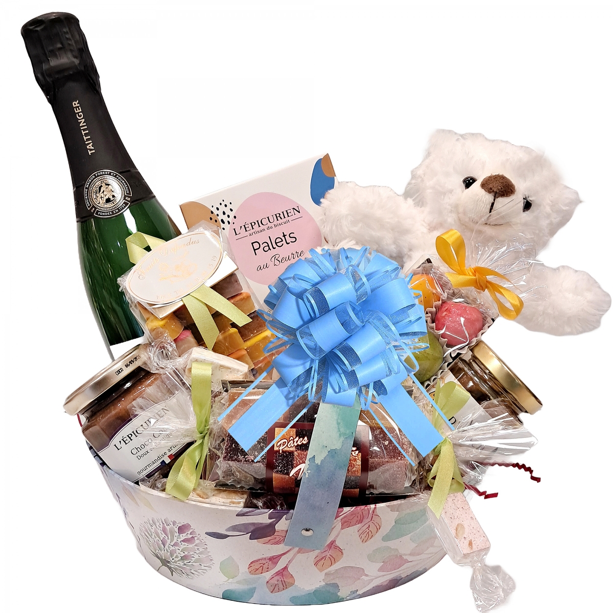 Offrez aux jeunes parents un instant de douceur et une petite bulle de réconfort avec ce Kit de Survie bien mérité ! Entre une coupe de Champagne Taittinger, des gourmandises raffinées et une touche de miel artisanal, ils pourront savourer un moment de plaisir bien mérité… sans oublier le nounours blanc, fidèle allié des premières nuits de bébé.